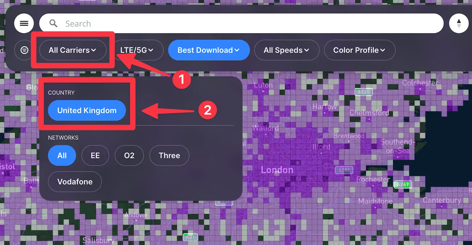 - Powerful Filters: Filter by carrier, technology (4G LTE and 5G), and data speeds